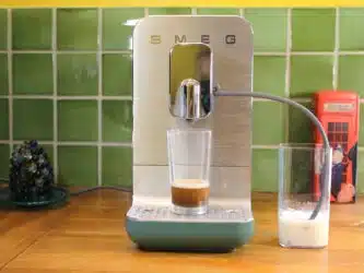 La cafetière avec broyeur SMEG BCC13 complète la collection de machines à café automatiques de la marque italienne, avec les BCC11 et BCC12, en proposant une offre tout en un avec le système à lait intégré. La grande nouveauté ici est le tuyau et la carafe de 500 ml en Tritan Renew et sans BPA.
