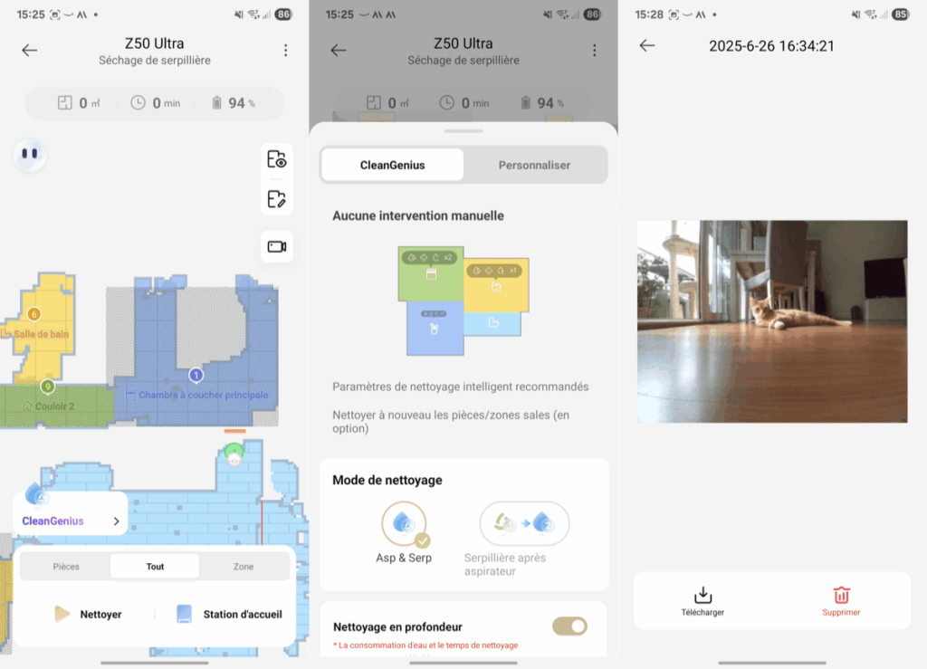 Nous avons constaté un autre phénomène agaçant. Lorsqu’il passe sur un tapis, le Z50 Ultra peut relever son rouleau serpillère. Mais ce n’est pas suffisant. Bien souvent les bords de celui-ci sont trempés après son passage. Si vous disposez d’un tapis à poils très épais, il vaut mieux ne pas faire circuler le robot dessus s’il opère une phase de lavage.