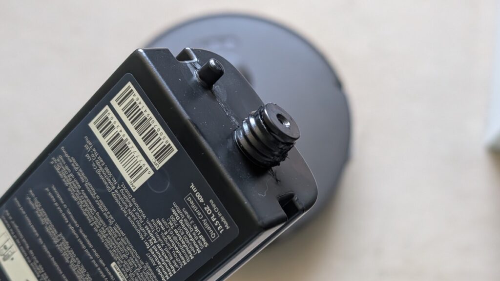 Derrière le bac d’eau propre se niche le réservoir de détergent. Mova en fourni un exemplaire de 500 ml. Cependant, ce flacon est un modèle propriétaire et il n’est pas possible de le recharger. Une fois vide, il faudra en racheter un nouveau au prix de 24,90 €. C’est excessif et pas très écologique non plus.