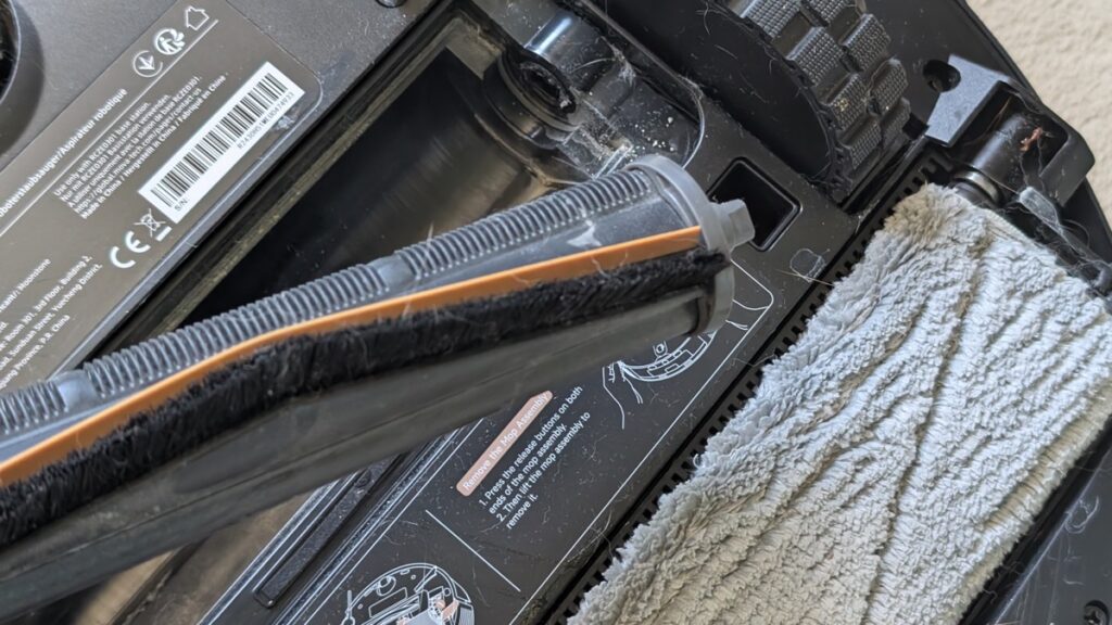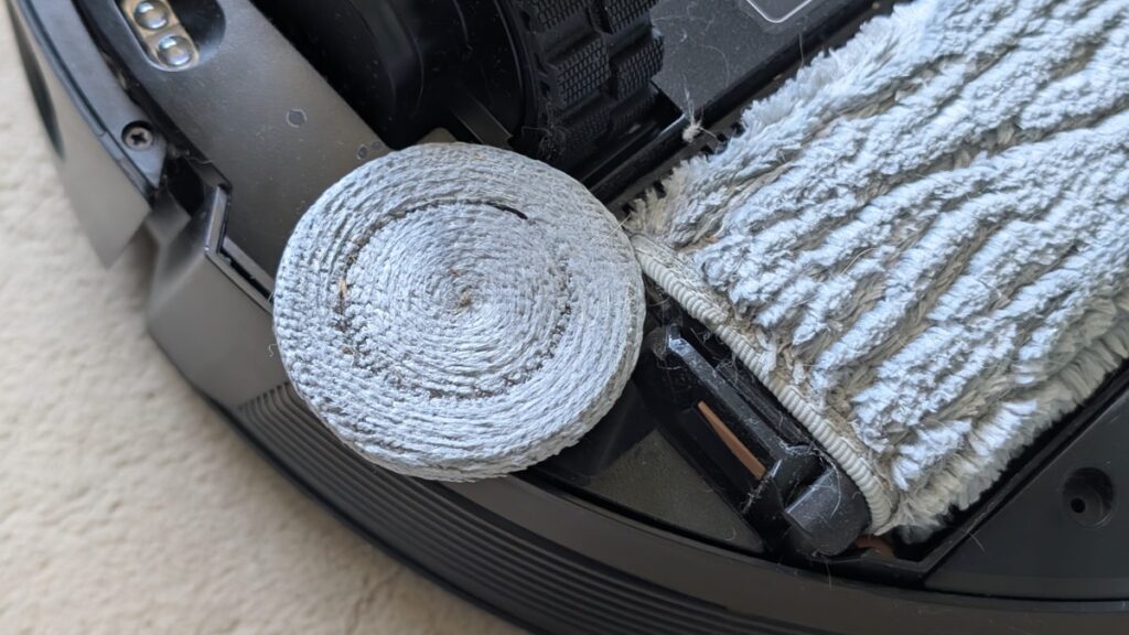 Le rouleau serpillère peut, de son côté, passer à la machine à laver. Un petit coup de chiffon sur le capteur de saleté est vivement recommandé pour éviter que le robot ne retourne laver sa serpillère toutes les 10 mn, trompé par de fausses informations.