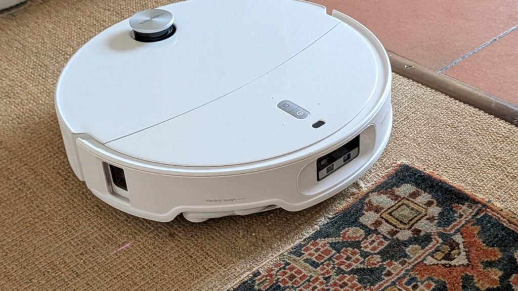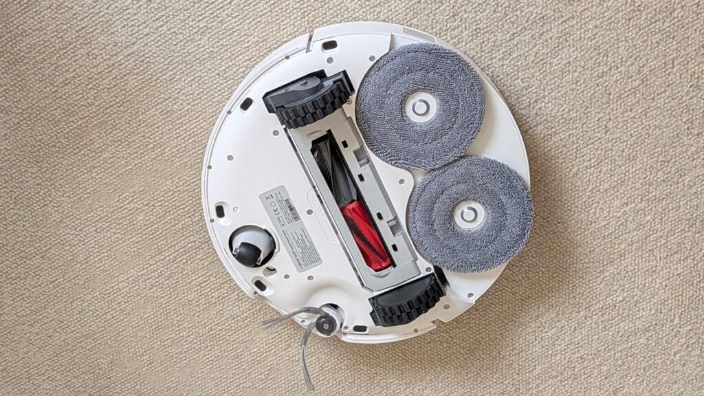 Ce n’est pas encore sur ce modèle que l’on pourra voir un rouleau serpillière à l’œuvre chez Roborock. Le Qrevo Curv 2 Pro se repose sur la traditionnelle technique des patins rotatifs dont l’un est extensible pour longer les murs et tenter d’atteindre les coins. Il peut aussi les laisser tranquillement à la station si on ne lui confie qu’une tâche d’aspiration.