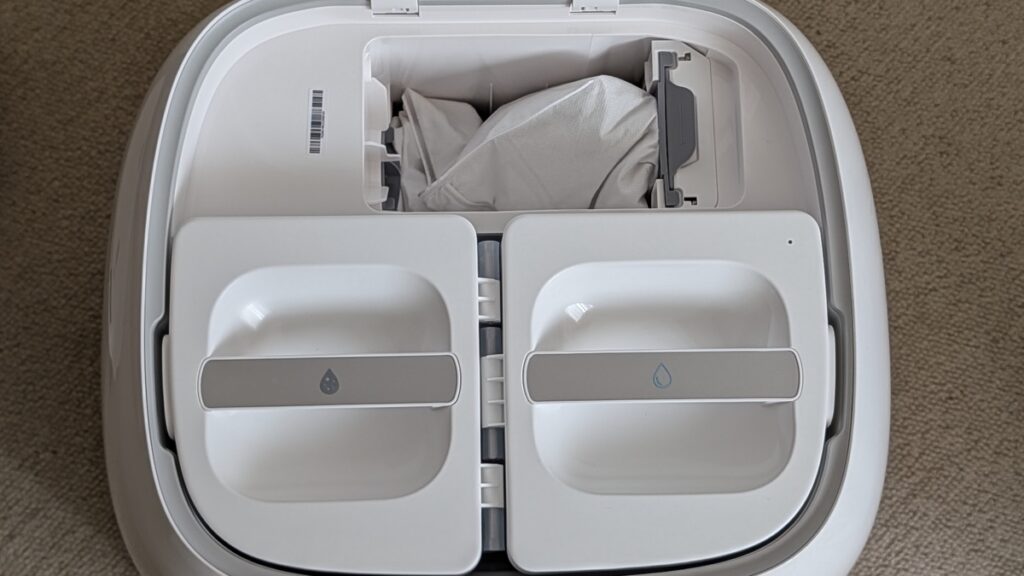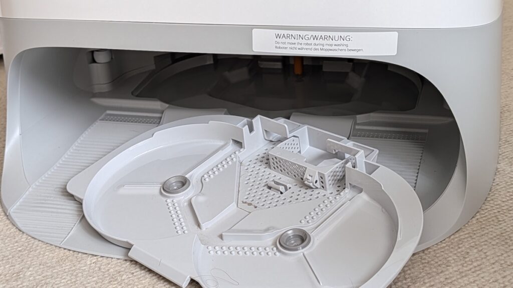Enfin, la planche de lavage est désormais amovible pour un entretien plus simple. Un coup de chiffon suffit à la débarrasser des déchets qui peuvent s’y accumuler. Une opération à effectuer rarement toutefois puisque, depuis l’appli, il est possible de déclencher un lavage de cette planche.